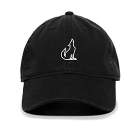 This handmade high quality White Embroidered Coyote on Black Ballcap is perfect for any occasion. Whether you're hiking, camping, or just enjoying a leisurely stroll, this adjustable ball cap hat is the perfect way to protect yourself from the elements. bull 100% chino cotton twill bull Unstructured, 6-panel, low-profile bull 6 embroidered eyelets bull 3 ⅛ &rdquo (7.6 cm) crown bull Adjustable strap with antique buckle Sizing: The hats are one size fits all with adjustable clip. Care Instructions: Hand wash only. Gentle scrub in bowl with warm soap/water.